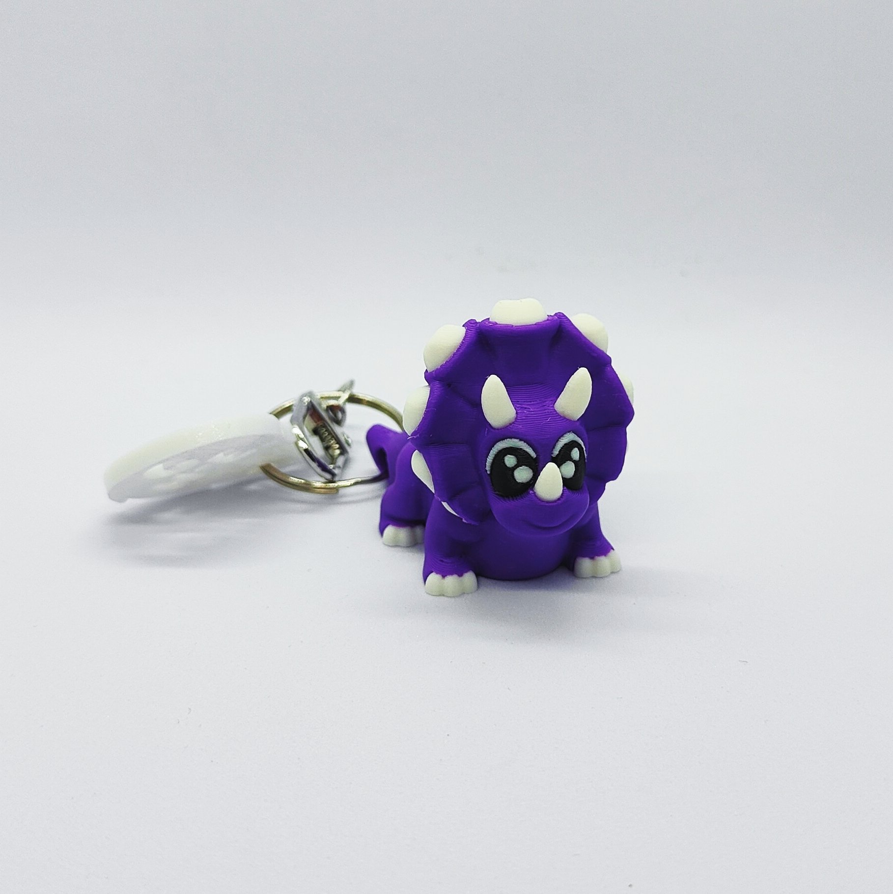 Tippy the Cute Flexi Triceratops Keychain is fully flexi and articulated and has a big ol' frill around its head.